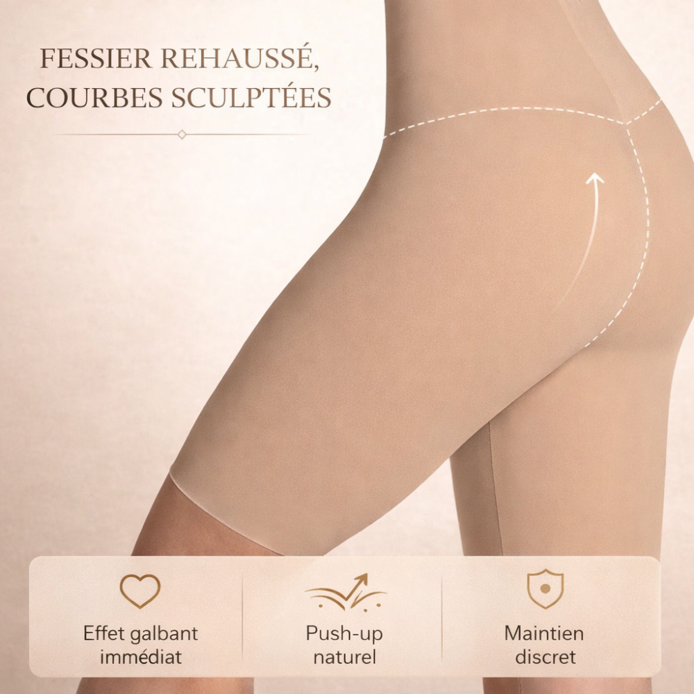 Sa compression ciblée et son effet push-up rehaussent délicatement le fessier pour un galbe harmonieux, tout en restant confortable et discret.