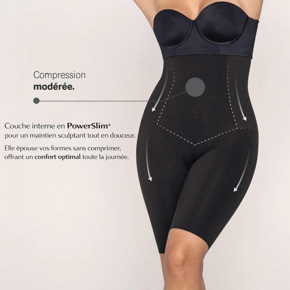 Sa coupe lisse les cuisses, affine la silhouette et assure un maintien confortable tout au long de la journée.